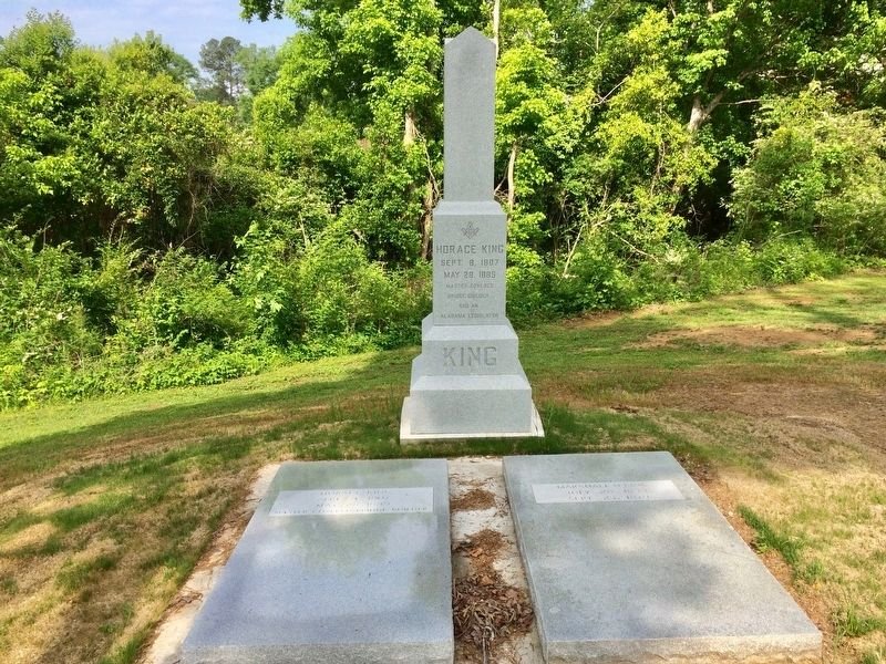 Inscription: Born a slave, Horace King became a master builder who constructed covered bridges over every large river between western Georgia and eastern Mississippi. King gained his freedom in 1846 through the Alabama legislature with the aid of his master, John Godwin. King placed an obelisk on Godwin's Phenix City, Alabama grave in 1859 which noted his love and gratitude. After the Civil War, King served two terms in Alabama's Reconstruction legislature. The political and business leader moved with his family to LaGrange about 1873. Horace and his son Marshal Ney King are buried just west of here.