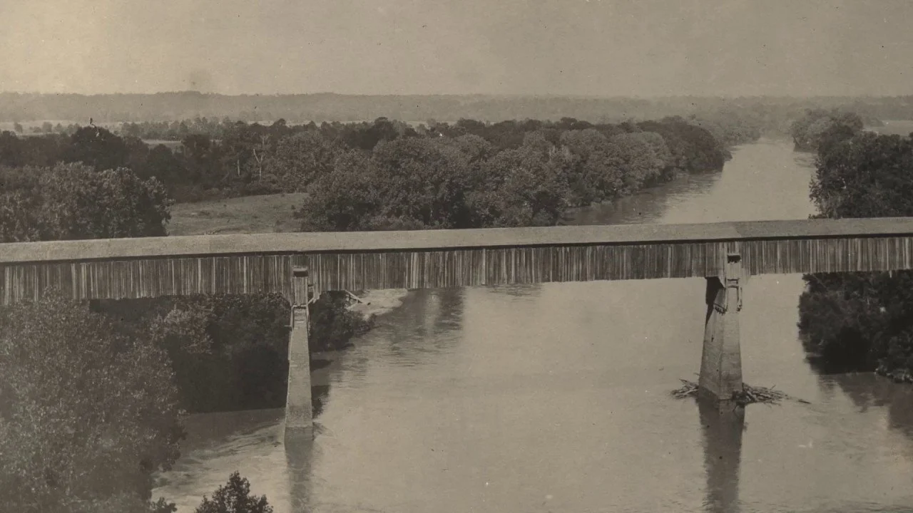 View of a bridge crossing the Chattahoochee at Eufaula, Alabama designed by King in 1839. Image courtesy of Alabama Department of Archives and History